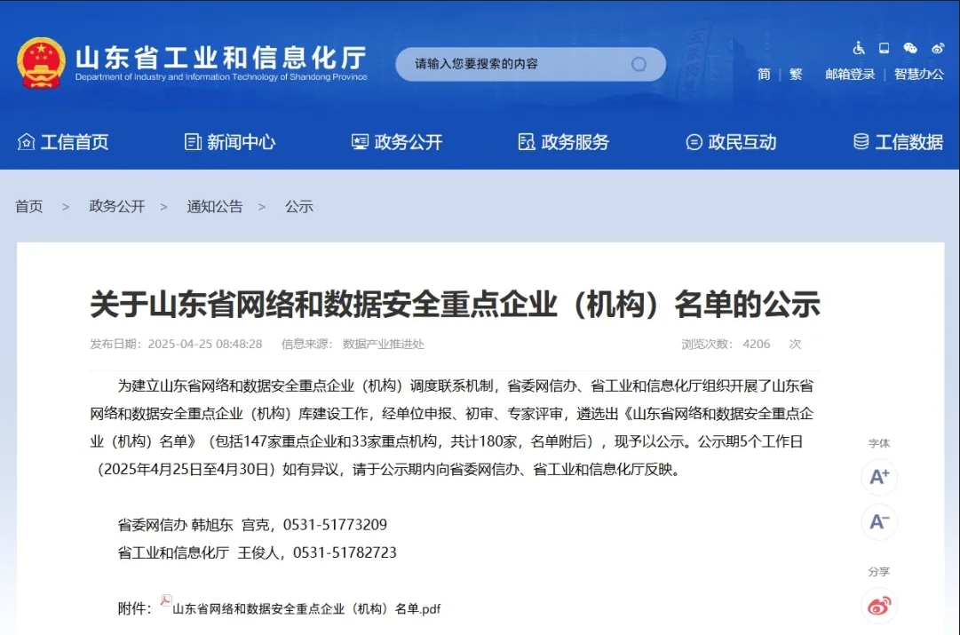 近日,在省委網(wǎng)信辦、省工業(yè)和信息化廳聯(lián)合開展的山東省網(wǎng)絡(luò)和數(shù)據(jù)安全重點企業(yè)(機(jī)構(gòu))庫建設(shè)工